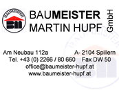 Die Baumeister Martin Hupf GmbH ist Ihr kompetenter Partner in den Bereichen: